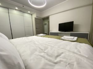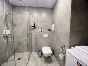 В квартире есть всё необходимое для комфортного проживания: современная мебель в комнате и кухня площадью 10 кв. м. Из техники — холодильник, телевизор и стиральная машина. Санузел совмещённый, оборудован душевой кабиной.