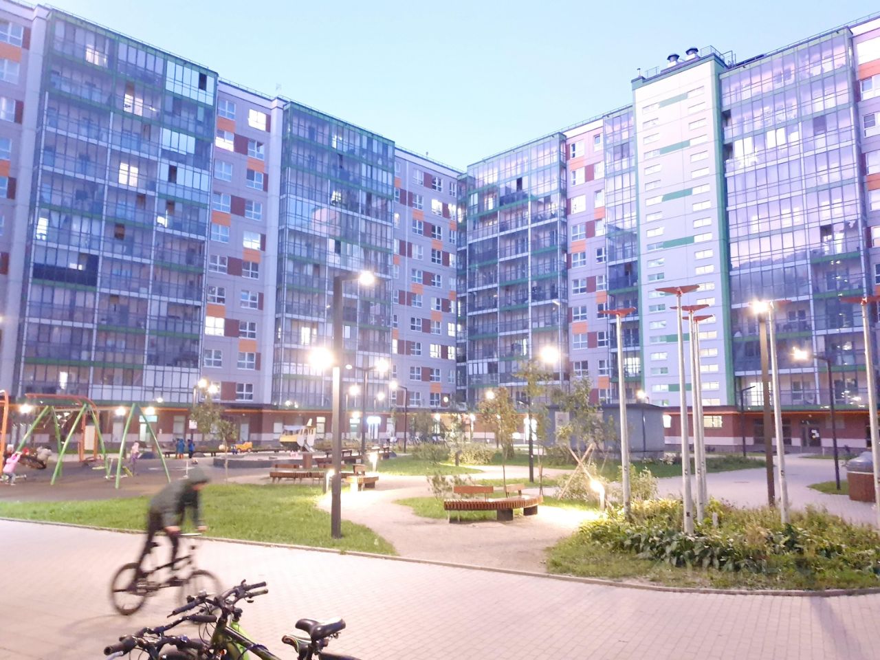 Двор комплекса закрыт от посторонних и свободен от машин. Здесь много места как для детей, так и для взрослых.