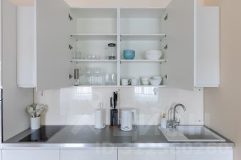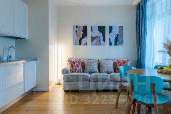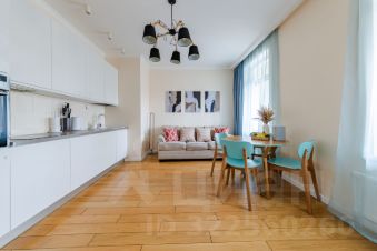 Полностью оборудованная большая гостиная (~>20м2 ): (посудомоечная машина, духовка, чайник, сковороды, кастрюли, фильтр для воды, посуда на 6 персон), с обеденной зоной, односпальным диваном и колонкой Алиса.