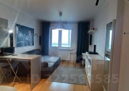 Студия просторная, светлая, солнечная, с прекрасным видом, большие окна, огромная лоджия 4,5 кв.м.Студия полностью оборудована мебелью и техникой, кухня во встроенной техникой и пр. Выполнен отличный ремонт. Квартира располагается на 13 этаже, площадка отделена от коридора, выполнен отличный ремонт. Вид из окон шикарный.