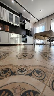 Светлая просторная квартира с дизайнерским ремонтом. Укомплектованная современной мебелью: Кухонный гарнитур, тумба, стол+стулья, в зале комфортный раскладной диван, кресло, письменный стол. В спальной комнате двуспальная кровать и комод, в третьей, большой втроеный шкаф и рабочий стол. Прихожая оснащена шкафом и тумбой. Из бытовой техники: Холодильник, варочная электрическая поверхность, духовой электрический шкаф, телевизор, стиральная машина. Ванная и сан.узел раздельные, застекленная лоджия, пол на кухне с регулятором подогрева. При необходимости приобретения дополнительной мебели или техники обсуждается.