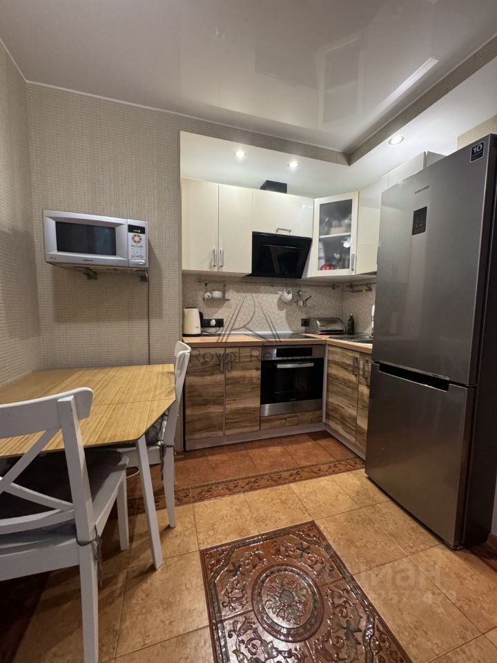 Комфортная кухня со всей необходимой техникой: холодильник, варочная панель, духовой шкаф, микроволновая печь, вытяжка, чайник. Так же обеденная зона.