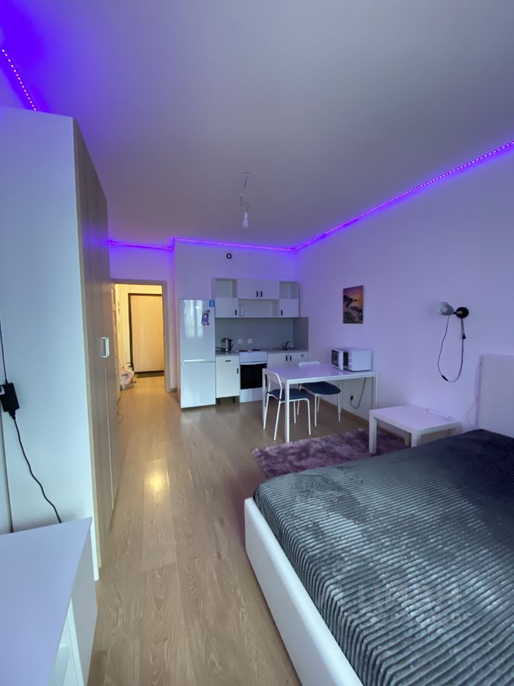 Сдаётся светлая студия в современном доме на третьем этаже. Общая площадь квартиры составляет 24 кв. м.