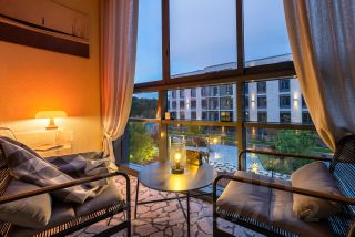 Высокий уровень безопасности — видеонаблюдение, охрана, домофон с системой "умный дом". Внутренний двор оснащен беседкой на открытом воздухе, собственной террасой, детской площадкой с гамаками