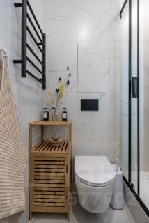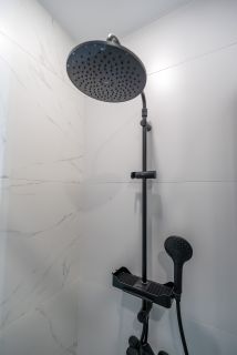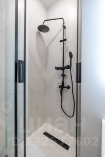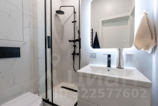 Современная ванная комната с душевой кабиной и стильной отделкой