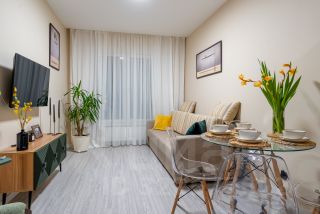 Предлагаем в аренду современную и стильную однокомнатную квартиру, расположенную в тихом районе города Сестрорецк. Общая площадь — 44,3 кв. м, просторная и светлая, выполненная в современном дизайне с особым вниманием к деталям.