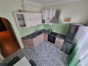 В квартире есть вся необходимая мебель и техника необходимая для комфортного проживания: гардеробная, раскладывающийся диван, отдельное рабочее место, посудомоечная машина, кондиционер, совмещенный санузел.