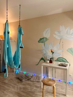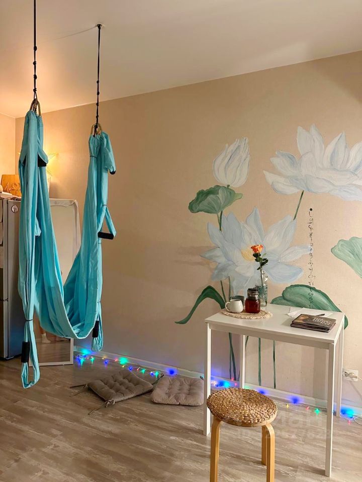 гамак, колонки для подключения расслабляющей музыки при занятиях йогой новый двуспальный диван - кровать