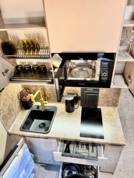 Имеется спальное место 1.20, зона тв и барная стойка для комфортной работы и отдыха.