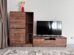 Полная мебелировка и вся необходимая техника: жалюзи во всех комнатах , занавески блэкаут, вертикальный пылесос, утюг, гладильная доска, сушилка для одежды.