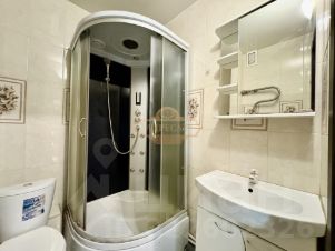 Санузел в кафеле, установлена душевая кабина.