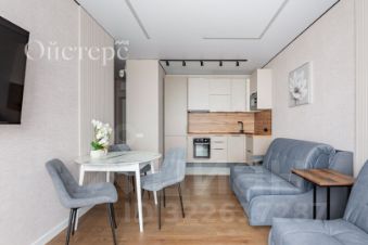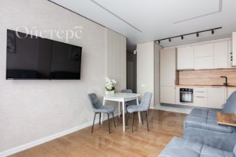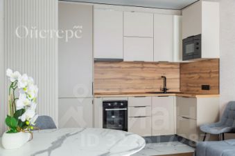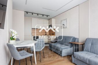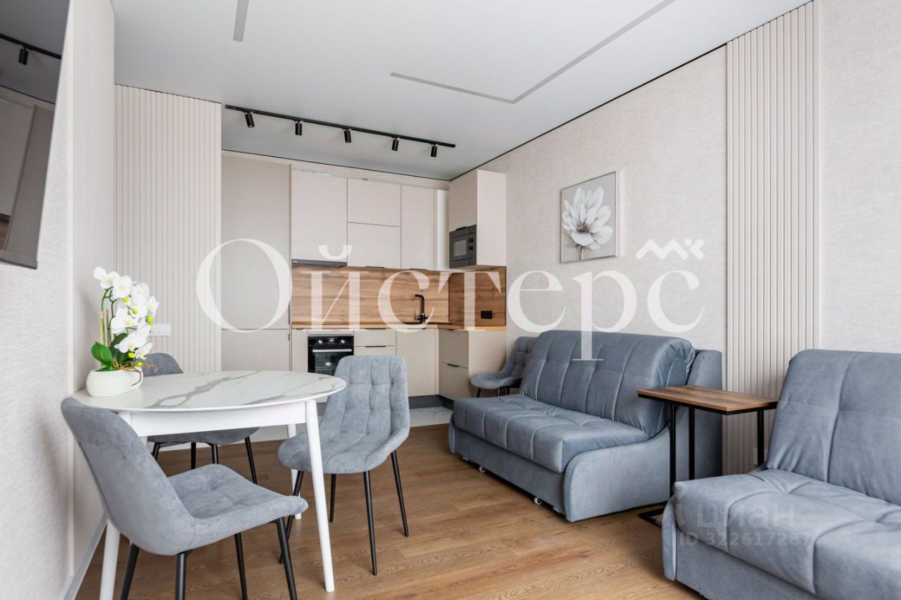 Кухня , площадью 19,7 кв. м., полностью оснащена всей необходимой встроенной мебелью и техникой (индукционная варочная поверхность, вытяжка, духовой шкаф, холодильник, микроволновая печь). В прихожей установлена встроенная система хранения вещей. В зоне кухни-гостиной расположены мягкие раскладывающиеся диваны (160X200, 120X2000), а также стол со стульями, телевизор с диагональю 55 см.; есть столовая посуда; гладильная доска; пылесос; для для проживающих предусмотрена посуда для приготовления пищи на индукционной варочной поверхности.