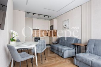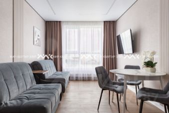 Квартира полностью готова для проживания. В отделке помещений использованы дорогостоящие материалы. Интерьер выполнен в единой цветовой гамме.