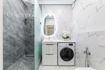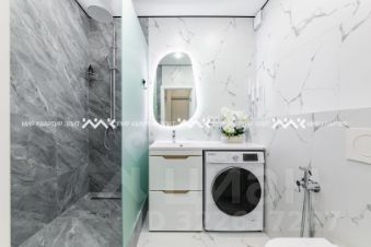Ванная оснащена душевой кабиной с тропическим душем; установлена стиральная машина.