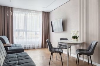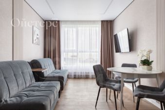 Квартира расположена в ЖК бизнес-класса "Голден Сити". Оригинальное остекление и геометрия фасадов, "воздушность" зданий — здесь много узнаваемых и запоминающихся элементов, которые выделяют его на фоне всей городской архитектуры.