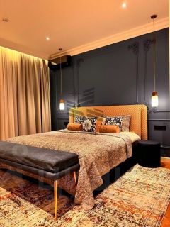 Просторная гостиная с панорамными окнами наполнена естественным светом, визуально расширяющим пространство. Эргономичная кухня оснащена современной техникой премиум-класса и дополнена стильным островом. Уютные спальни с камерной атмосферой обеспечивают комфортный отдых, а продуманная планировка создает ощущение приватности.