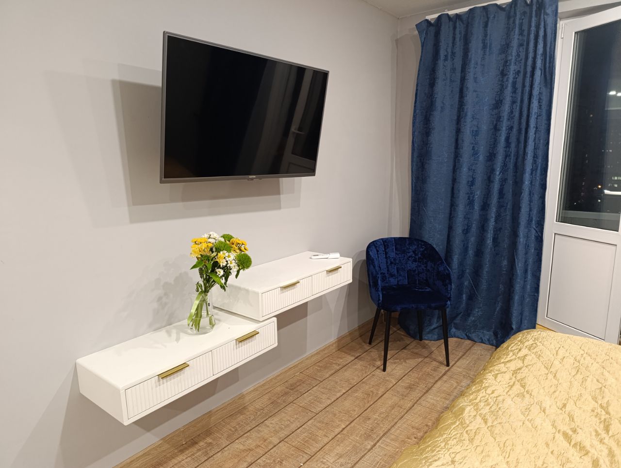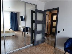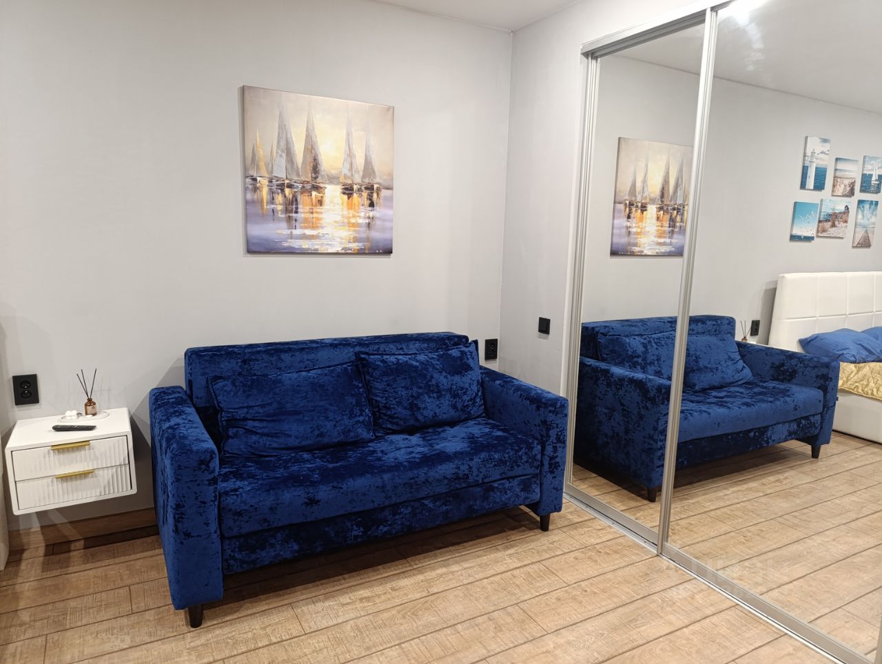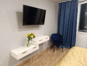 Все готово к проживанию, есть вся необходимая мебель, техника, посуда. В спальне имеется двуспальная кровать, тумбы, диван, смарт-тв на ОС Яндекс, большой встроенный шкаф-гардеробная, кондиционер. Диваны в кухне и спальне раскладываются, образуя дополнительные спальные места. Подойдёт для комфортного проживания 2 человек.