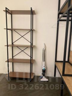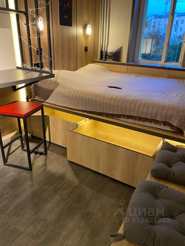 В помещении есть всё необходимое для комфортного проживания: удобная кровать-подиум с выдвижными большими секциями для хранения, стеллаж, телевизор со SMART TV, шторы блэк-аут.