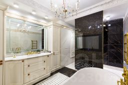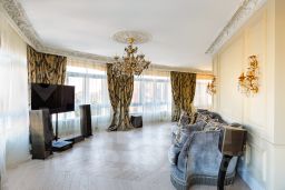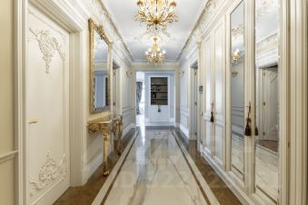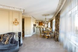 В квартире сделан ремонт по индивидуальному дизайн проекту. Лепнина по всему периметру ручной работы, столешница кухни, а также санузлы из мрамора, в остальных комнатах на полу паркет. Вся бытовая техника премиум класса (Gaggenau, V-ZUG).
