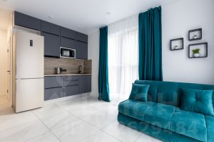 Просторная, теплая, светлая с большими панорамными окнами,есть вся необходимая мебель и бытовая техника.