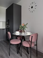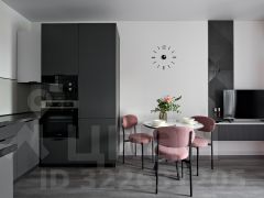 кухня с новой бытовой техникой (холодильник, посудомойка, индукционная варочная панель, духовка, стиральная машина, СВЧ-печь, электрический чайник), а так же вся необходимая посуда и столовые приборы, фильтр для питьевой воды; чай, кофе, сахар, перец, соль, подсолнечное масло, средство для мытья посуды;