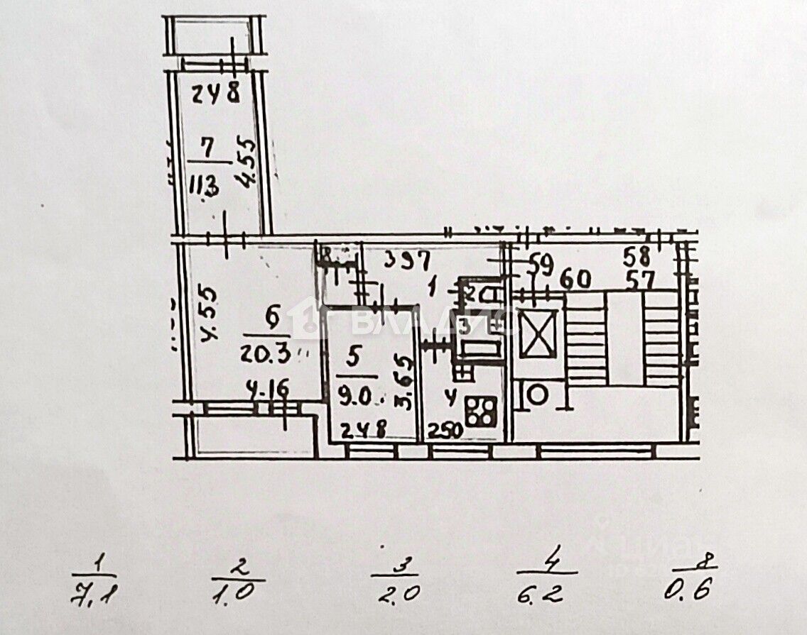 57,5 м²