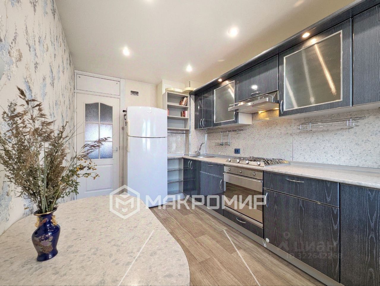 Просторная Кухня 10 кв. м. оборудована техникой: газовая плита, вытяжка, холодильник,духовка
