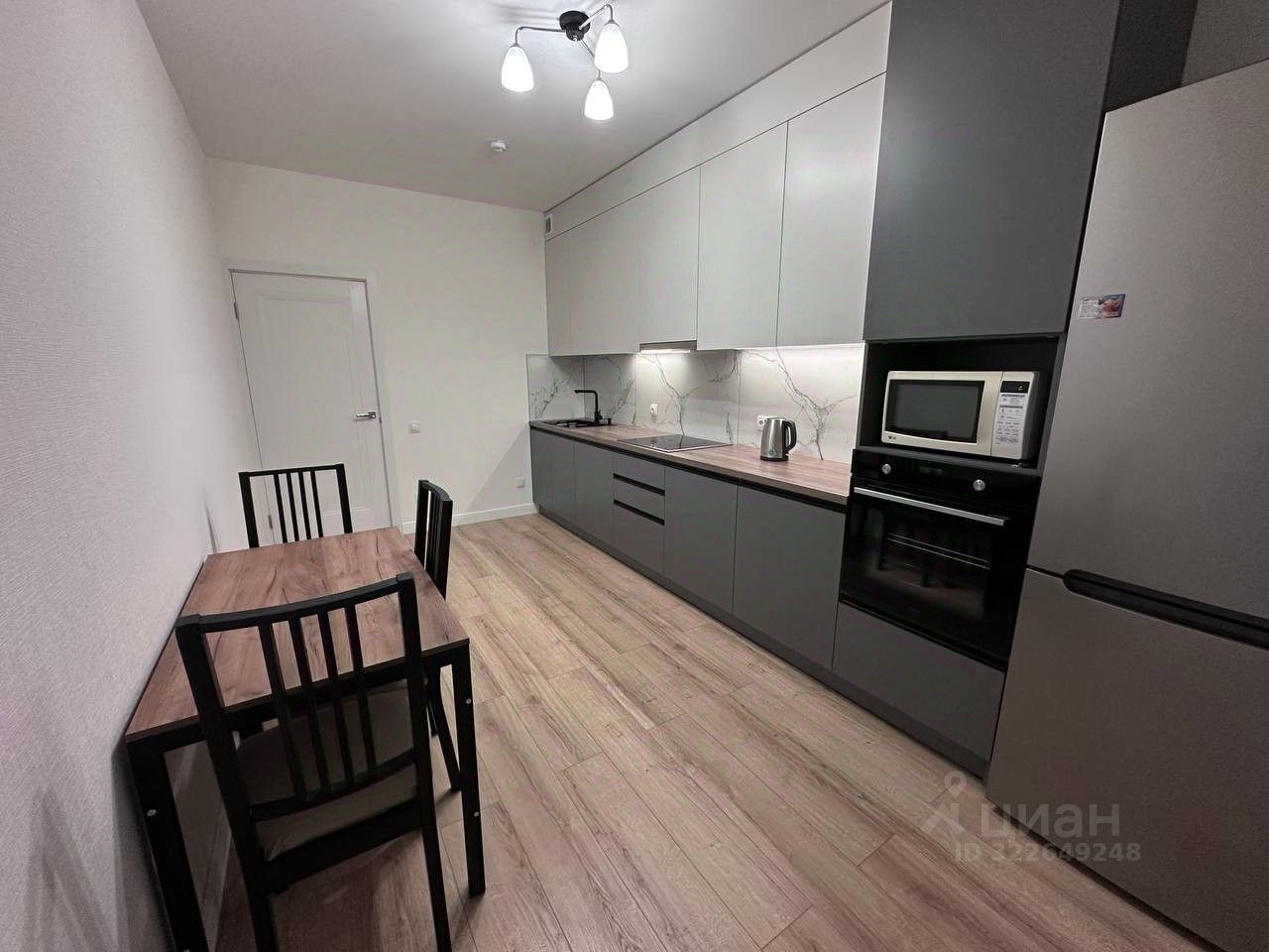 Кухня: функциональная кухонная мебель, вся необходимая встроенная и отдельно стоящая техника (холодильник, варочная панель, духовка, вытяжка, микроволновка).