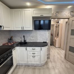 В квартире сделан стильный евроремонт. Просторная комната и кухня полностью меблированы. Имеется вся необходимая техника: холодильник, телевизор и стиральная машинка.
