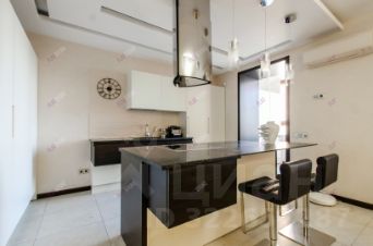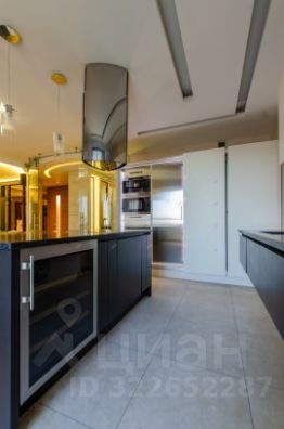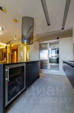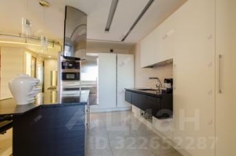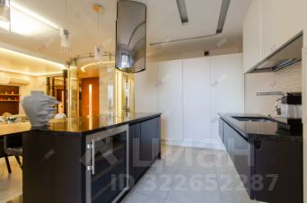 Кухня итальянская со встроенной техникой MIELE. Пароварка, холодильник, духовой шкаф, кофемашина, микроволновая печь, варочная поверхность. Возле кухни есть лоджия и на ней установлены стиральная и сушильная машины MIELE.