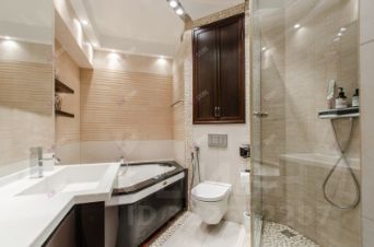 Санузел гостевой. Три лоджии. Три вместительные гардеробные системы в комнатах для хранения вещей. Две гардеробные системы в прихожей. Два санузла: один с ванной с гидромассажем и душевой, второй санузел гостевой. Полы с подогревом. Все подоконники красивые каменные. Три кондиционера.
