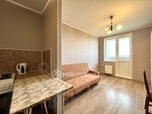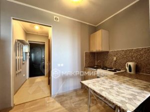 Просторная прихожая с организованным местом для хранения верхней одежды, совмещенный санузел и жилая комната с кухней и выходом на балкон.