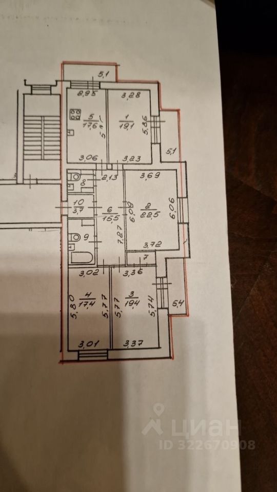 В квартире две изолированные спальни (17,4+19,4), гардеробная, кабинет (19м) и гостиная (22,5 м)