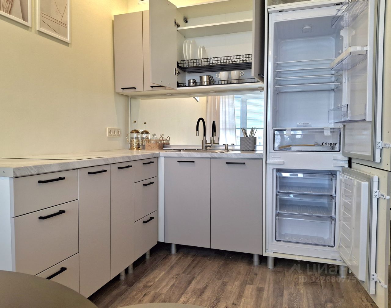 Отличное оснащение квартиры - полноценная кухня с новой техникой, в том числе большой встроенный холодильник, стиральная-сушильная машина!