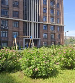Закрытый двор-сад только для жителей дома - с шикарными цветами, беседкой, зонами для отдыха и спорта.