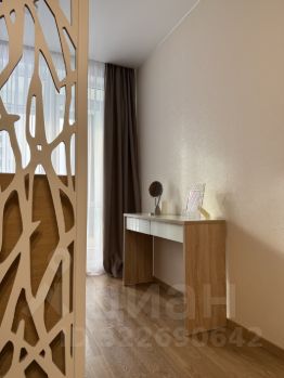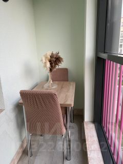 Площадь студии 30 м2 (комната, спальная зона, зона кухни, прихожая, гардеробная, санузел), а также панорамный большой балкон почти 5 м2.