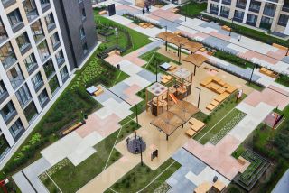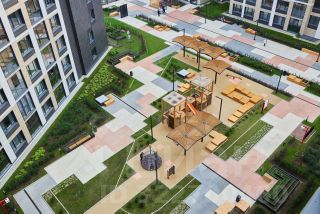 В ЖК отлично оборудована придомовая территория, как для взрослых, так и для детей. В самом ЖК обилие магазинов и мест общепита.