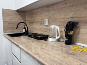 —кухня, оборудованная всем необходимым: (электрическая варочная панель, холодильник, микроволновая печь, электрический чайник, полный комплект посуды для приготовления пищи, столовой посуды, столовых приборов).