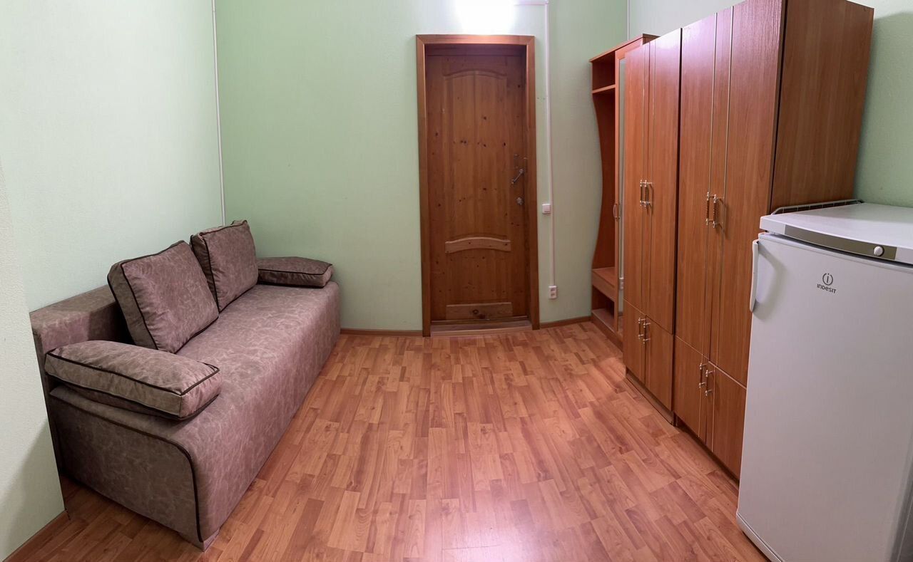 В комнате стеклопакеты и шторы блэк-аут, холодильник, диван, три шкафа. Стол и кресло готовы купить в счет аренды. Высота потолков 4 м, что позволяет сделать второй этаж, если арендатор захочет, то можно в счет аренды.