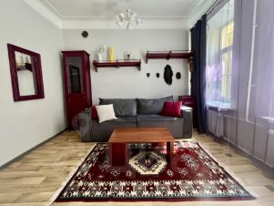 Уютная квapтира в тихой чacти центра Петepбуpгa c видом на тихий зелёный двор, выcoкими потолками, свежим косметическим ремонтом, авторской деревянной мебелью и картинами петербургских художников, а также всем необходимым для комфортного проживания.