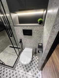 В сан.узле душевая стойка,стиральная машина и гигиенические средства