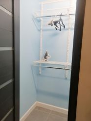 Гардеробная: гладильная доска и утюг, свежее постельное бельё и полотенца.