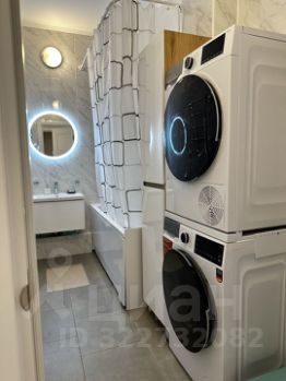 Раздельный санузел. В просторной ванной комнате установлена стиральная и сушильная машины.