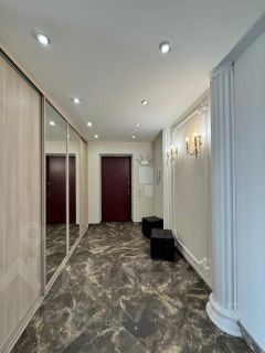 Квартира общей площадью 150 кв. м. Планировка: 3 изолированные спальни (22+16+16 кв.м.), большая гостиная 35 кв. м. с выходом на открытую лоджию с видом на город, кухня-столовая 23 кв. м. Два сан. узла, - в одном из которых ванна с джакузи, холл 16 кв.м.