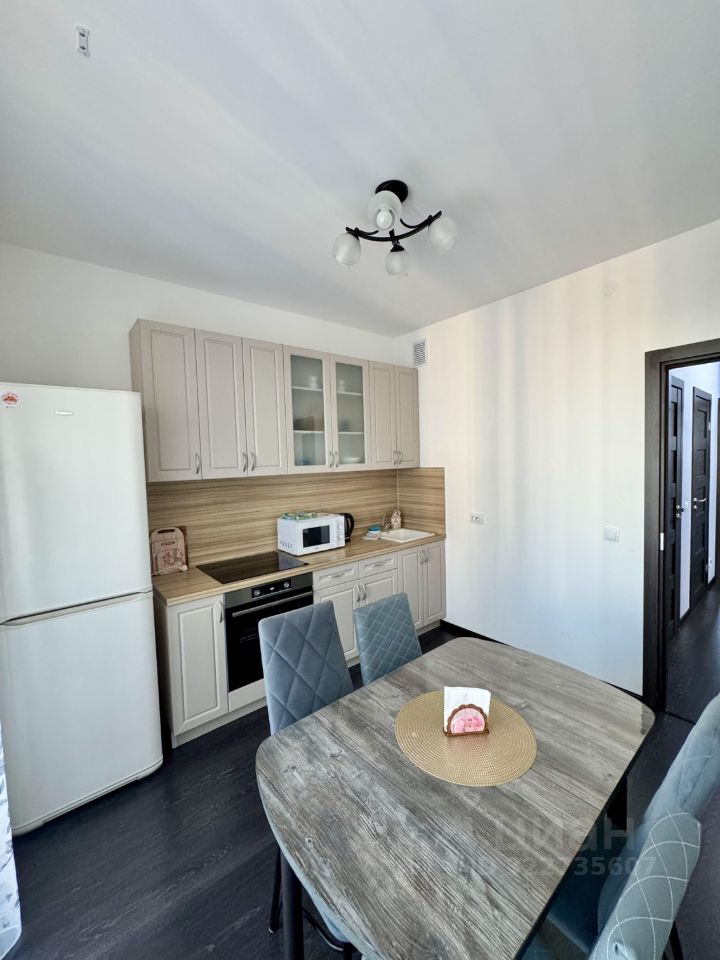 В квартире есть все необходимое для комфортного проживания: полностью укомплектованный кухонный гарнитур, посуда, электро-плита, духовой шкаф, СВЧ печь, чайник, холодильник, обеденный стол и стулья.