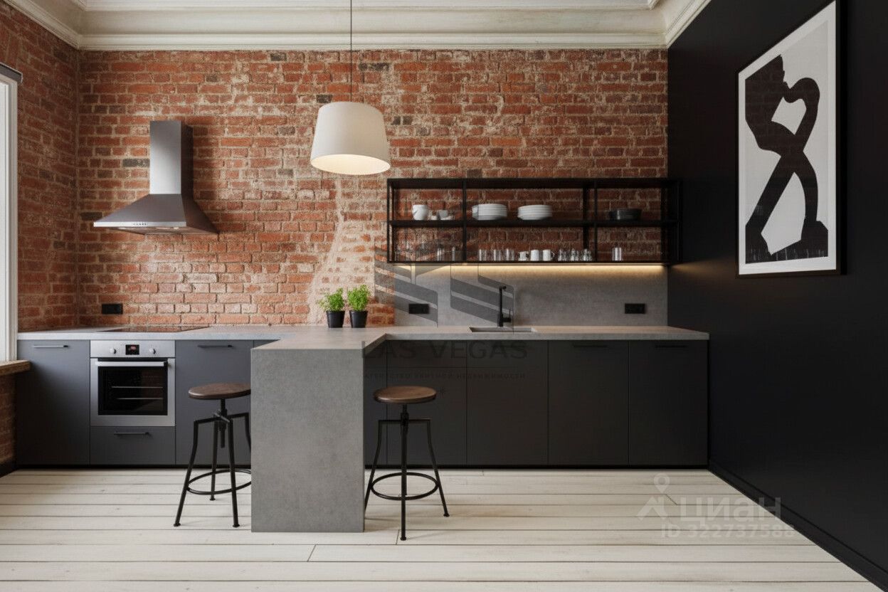 Просторная гостиная с высокими окнами наполнена естественным светом, подчеркивающим выразительные детали интерьера. Функциональная кухня-гостиная оснащена встроенной техникой премиум-класса и дополнена стильным островом. Уютная спальня с камерной атмосферой обеспечивает приватный отдых, а продуманная организация пространства демонстрирует безупречный баланс комфорта и стиля.