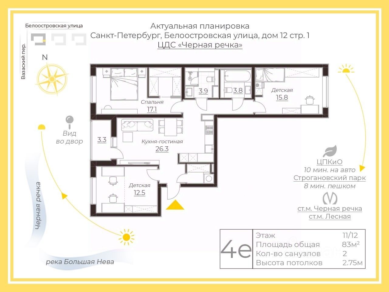 Окна направлены в благоустроенный, тихий двор, а также на Газпром Арену, Лахта Центр и Кантемировский Мост.