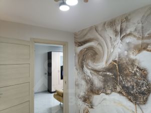 - Пол в квартире выполнен керамогранитом "светлый мрамор", обеспечивает чистоту и легкость уборки.