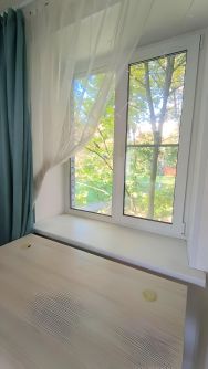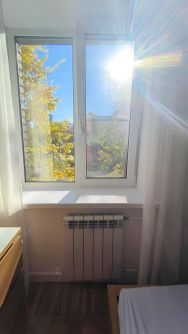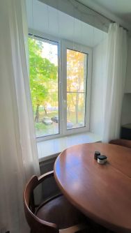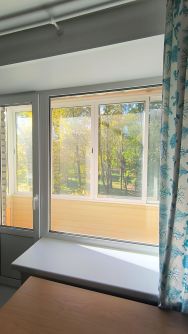 Окна на три стороны: юг-запад-север, все в зелёный двор, очень тихо. Застекленый балкон.