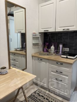Кухонная зона: микроволновая печь, чайник, 1-конфорочная индукционная плита. Посуда, кухонные принадлежности также есть. Вместительный холодильник с морозильной камерой